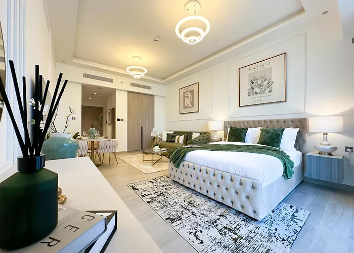 Disfruta de tus vacaciones en Dubái en el Trophy Elegant Suite W Premium Facilities & Golf Simulator Dubái. Ideal para quienes buscan una experiencia auténtica, está situado a 6 km de Dubái Knowledge Village y a 3 km de The Torch.